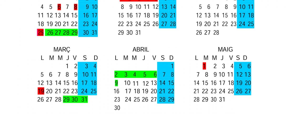 CALENDARI ESCOLAR ESO, BATXILLERAT I FP
