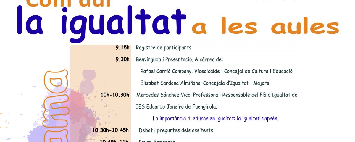 La FAMPA Enric Valor us convida a la Jornada “Com dur la igualtat a les aules” que tindrà lloc el dissabte 23 de setembre a les 9:30 hores a Dénia, Edifici Baleària Port, sala “La Casa de la Paraula”. És d’accés lliure, caràcter gratuït i comptarem amb servei de ludoteca per als nens que us acompanyen.
